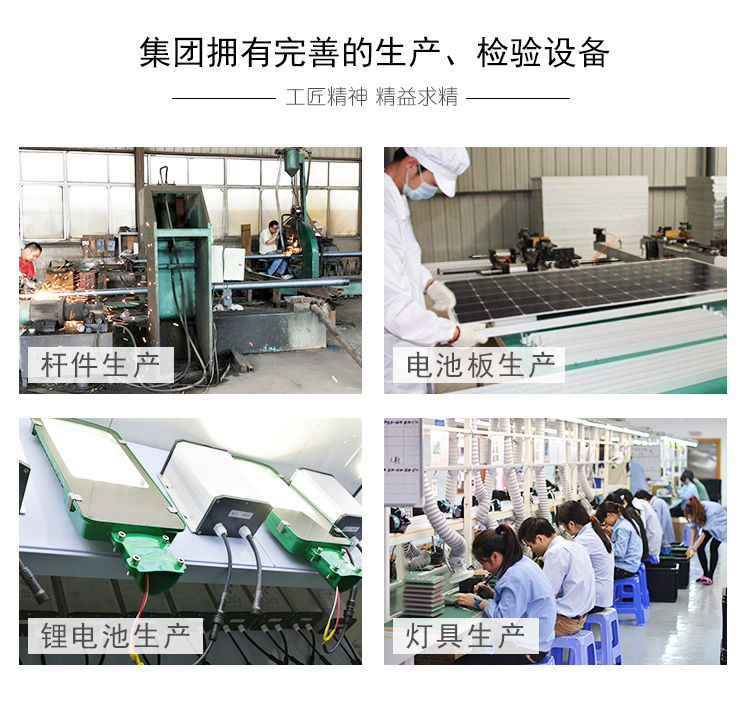 公司擁有路燈加工和檢測儀設(shè)備,有豐富經(jīng)驗(yàn)的太陽能路燈產(chǎn)品研發(fā)人員和產(chǎn)品技術(shù)人員以及完善的售后保障體系,公司擁有國家城市道路照明承包資質(zhì)。現(xiàn)有工廠兩座,工廠現(xiàn)有員工200余人,市場開發(fā)人員20余人,工廠占地面積20000m2,擁有生產(chǎn)設(shè)備60多余套,其中1200T大型折彎機(jī)能加工一次成型15米鋼桿,另有數(shù)控壓鑄機(jī);高速縱剪機(jī);自動(dòng)收口埋弧焊機(jī);埋弧焊氣焊;焊接探傷設(shè)備;等離子切割機(jī);合縫機(jī);校直機(jī);噴塑生產(chǎn)線;納米噴涂生產(chǎn)線;大型烘箱;不銹鋼生產(chǎn)設(shè)備;沖床;車床;刨床;鉆、彎等設(shè)備。